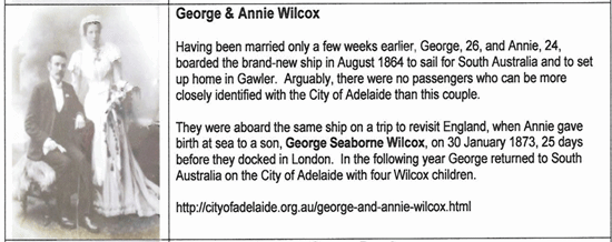 George and Annie were married 3rd June 1864 and almost immediately sailed for Adelaide in the new ship "City of Adelaide."